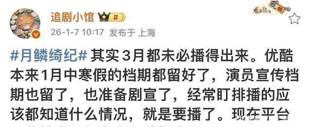 针对《月鳞绮纪》的“延期”传闻,粉丝也拿出了备案信息反驳,既没有拿到发行许可证,也没有启动正式招商,更没有官宣过任何播出档期,连定档的基础条件都不具备,何来“延期”一说? 他们特意强调,上个月的集数变更只是备案阶段的正常调整,剧集甚至还没完成正式过审流程,现在就说受纠纷影响,纯属无稽之谈。
