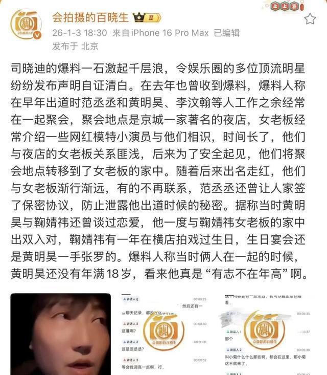 还没等这事儿妥善解决,又有“热心”狗仔适时出来添乱,爆料说得有鼻子有眼,称黄明昊未成年时就通过北京的夜店人脉结识了鞠婧祎,还在横店为她操办过生日宴。