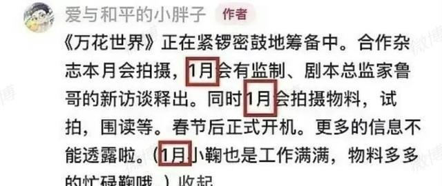 大家真的不用太上头,最晚这个月,怎么也该见分晓了,别忘了,王一栩上个月可明说了,《万花世界》1月就要启动围读、试拍了。 鞠婧祎是铁打的女主角,到时候她能不能正常进组、状态好不好,有没有被影响,一看便知。 不管怎么说,还是希望鞠婧祎能顺利度过这个关卡(当然前提是她确实没问题),合约纠纷早日尘埃落定,毕竟...我对《月鳞绮纪》确实有点子兴趣。