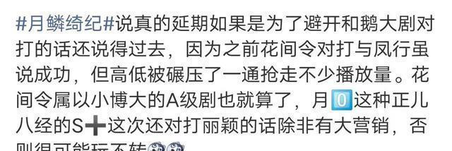 本以为能靠新剧翻个盘吧,结果在瓜主和网友口中“即将于1月播出”了好一阵的S+大剧《月鳞绮纪》,也突然传出要延至3月的消息,甚至3月都不一定播得了。