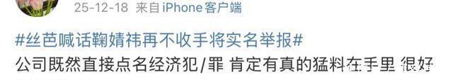 粉丝自然是全身心信任偶像的,在丝芭官博评论区一边怒斥“你是黑社会啊?”、“别占用公共资源了”、“没有鞠婧祎谁知道你是什么东西”,一边催促“有冤情去法院”、“真占理就快点告”、“有本事开庭别撤诉”。